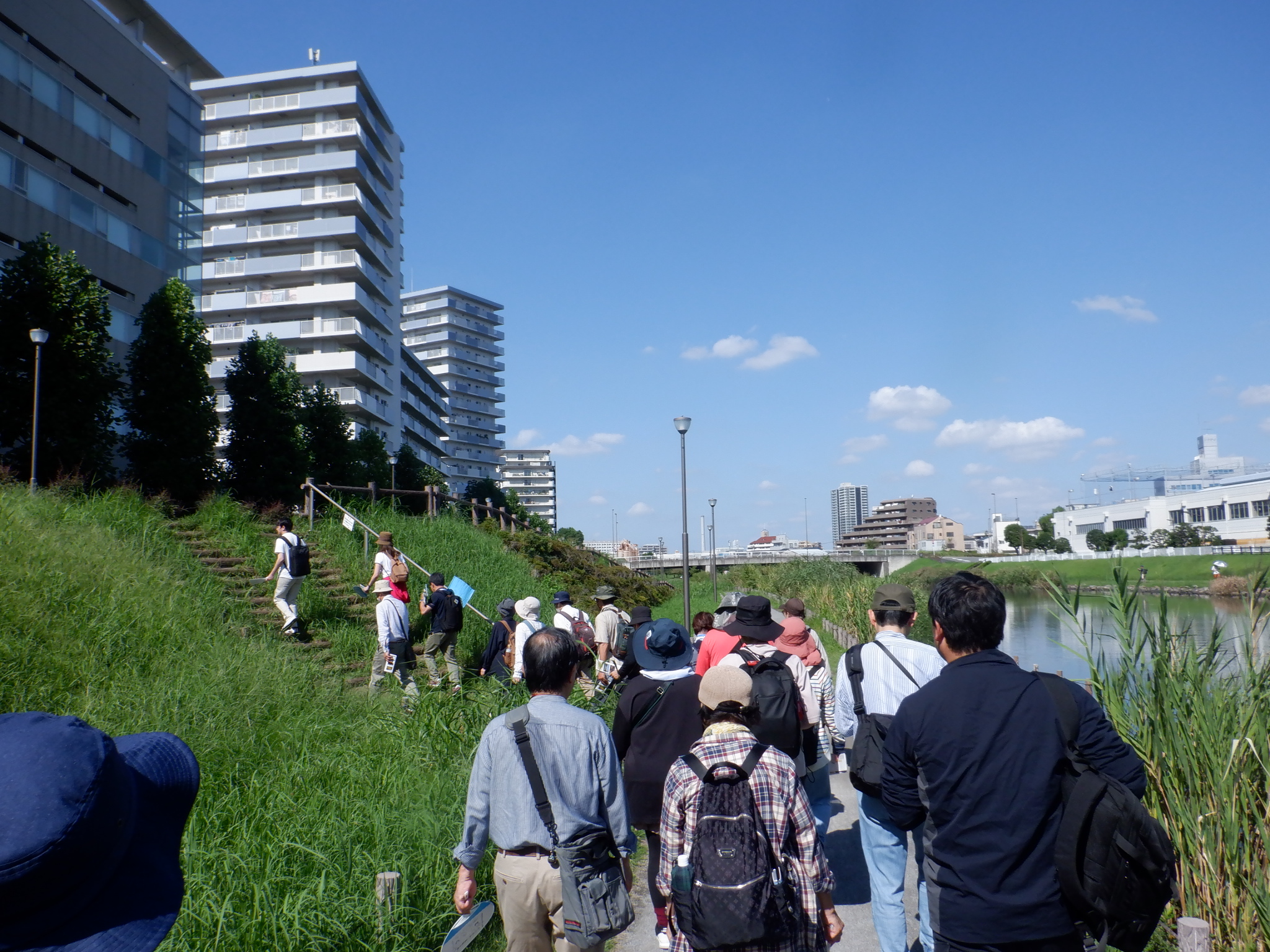 「川を歩こう(旧中川コース)」では、旧中川により親しんでいただくため、川沿いを歩きながら川の様子や歴史、川づくりなどについて解説します。 日ごろ何気なく眺めている川をより身近に感じることができるイベントです。