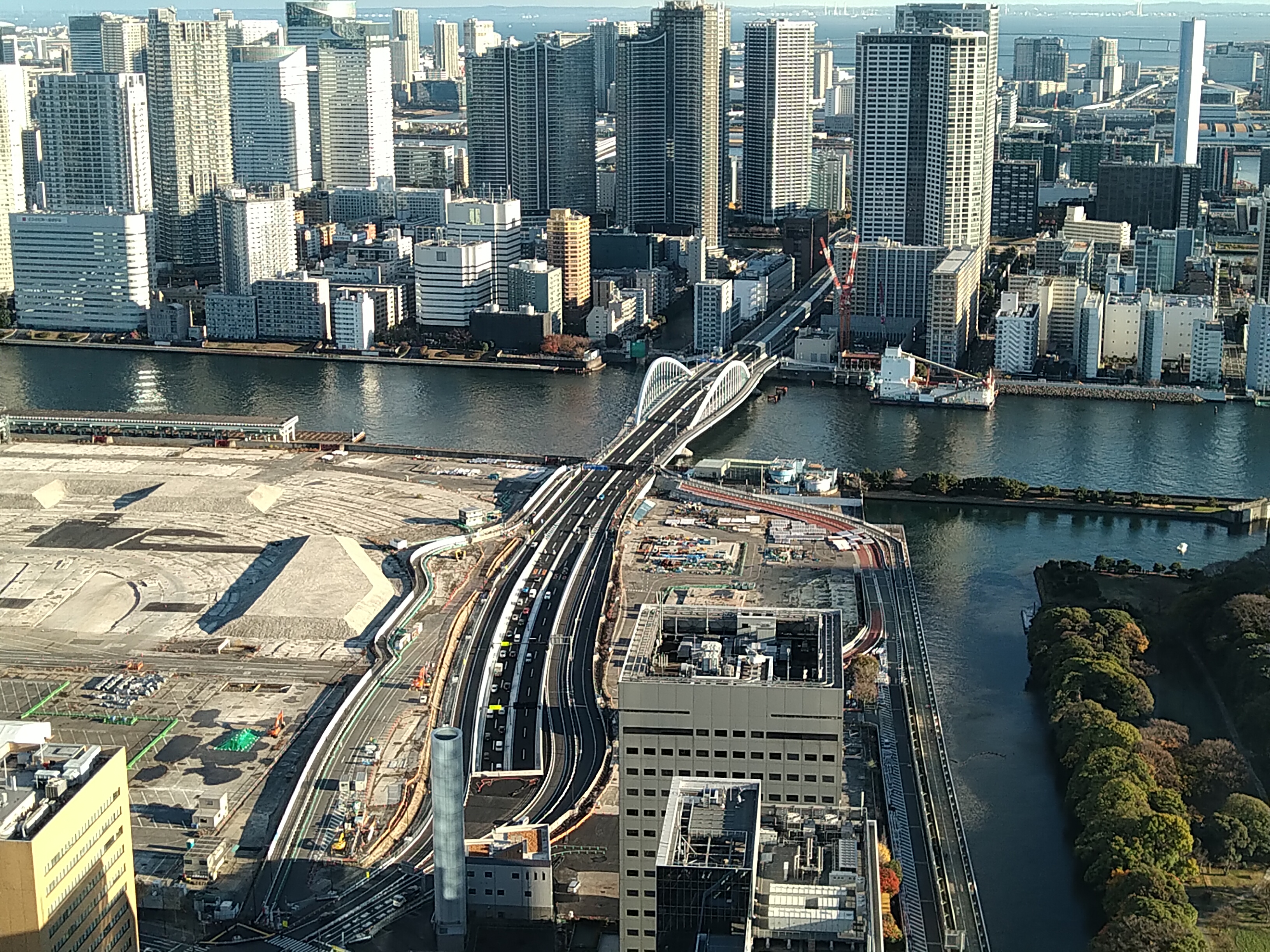 環状第2号線のうち、中央区築地五丁目から港区新橋四丁目までの約1.4kmの本線区間を令和4年12月18日(日)の15時に交通開放しました。これにより環状第2号線全線での開通が実現しました