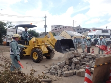 緊急道路障害物除去(啓開)作業は、道路損壊、道路上への落下倒壊物、放置された車両などの交通障害物により通行不能になった道路において障害物を除去し原則上下各1車線を確保し、避難・救護・救急対策のため初期の緊急輸送機能の回復を図る重要な作業であります。