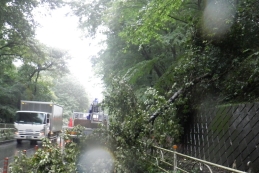 また、台風時など強風が吹いた場合には倒木の処理や枝折れによる第三者事故の防止のため巡回点検を行っています。