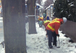 管内に大雪注意報が発表された場合、補修課及び各工区職員は参集し雪害対策計画書に基づき除雪作業の連絡態勢を整えます。除雪対象箇所は路線の重要度の高い区間、カーブや坂路などの危険箇所、歩行者の多い駅周辺部などを重点的・優先的に作業を行っています。