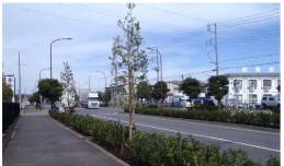 道路の交通安全の確保に加え、快適な都市環境の保全及び道路景観の向上等を目指し、状況に応じて道路区域内に街路樹または植樹帯を設置して道路緑化の推進に努めています。