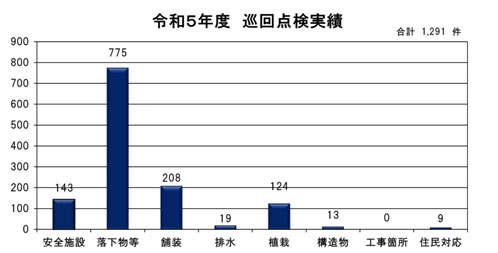 なお、令和5年度の道路の巡回点検実績と都民の声から寄せられた項目は下記のとおりです。