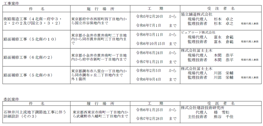 東京都北多摩南部事務所では、成績が優良な工事又は委託を公表し、その受注者の方に賞状等を贈呈しております。