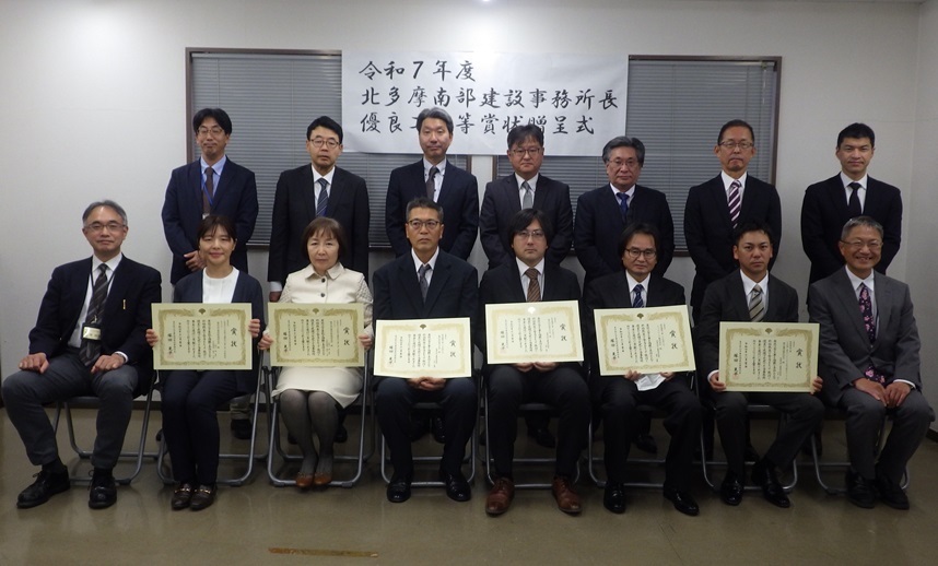 令和7年11月11日に令和7年度北多摩南部建設事務所長優良工事等賞状贈呈式を執り行いました。