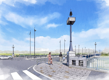新しい関戸橋は、地元の皆様のご意見をお聞きしながら、地域の歴史を尊重し、初代関戸橋の威厳と品格を 継承するとともに、皆様に末永く愛される、シンボリックかつ存在感のあるデザインとしました。
