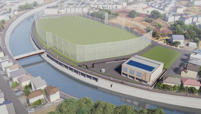 境川金森調節池は、貯留量約151,000㎥の地下箱式調節池です。町田市の市有地であるスポーツ広場の地下に建設するもので、平成30 年度に本体工事に着手しました。