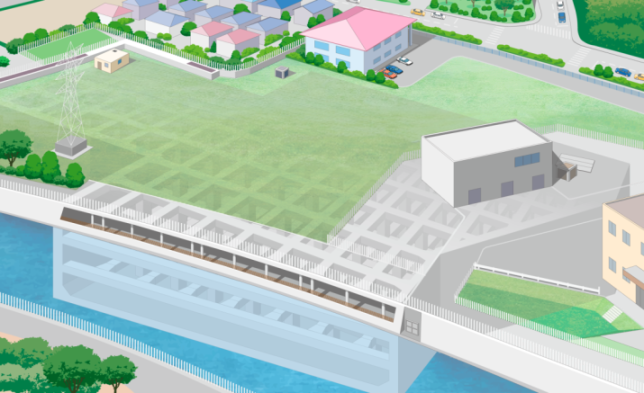 境川木曽西調節池は、貯留量約50,000㎥(予定)の地下箱式調節池です。河川敷に建設するもので、令和7年度に本体工事に着手する予定です。