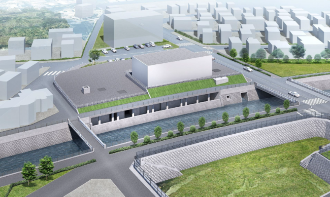境川木曽東調節池は、貯留量約49,000㎥の地下箱式調節池です。町田市の境川クリーンセンター敷地の地下に建設するもので、令和2年度に本体工事に着手しました。