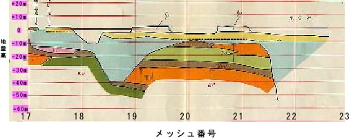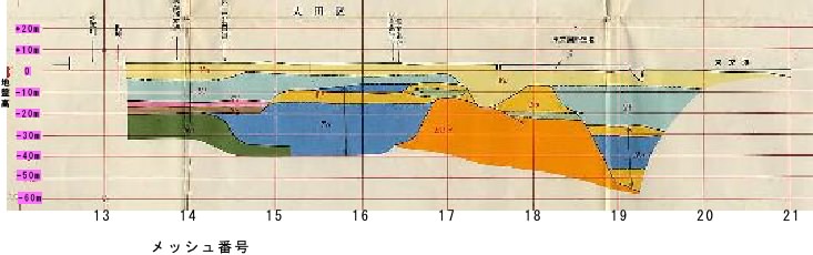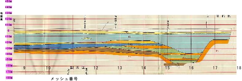 必要箇所のメッシュ番号をクリックしてください。東西方向の地質断面図が表示されます。