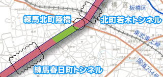 北町若木トンネルは環状第8号線(練馬区北町/板橋区若木)が東武東上線と立体交差するために設けられたトンネルで、平成18年5月に開通しました。