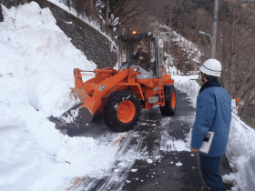 積雪時における道路交通の安全を確保するため、地元業者と除雪に関する協定を結ぶとともに、資機材や労力、作業分担、建設事務所の対応要員及び連絡系統等を整え、実施態勢を確保しています。